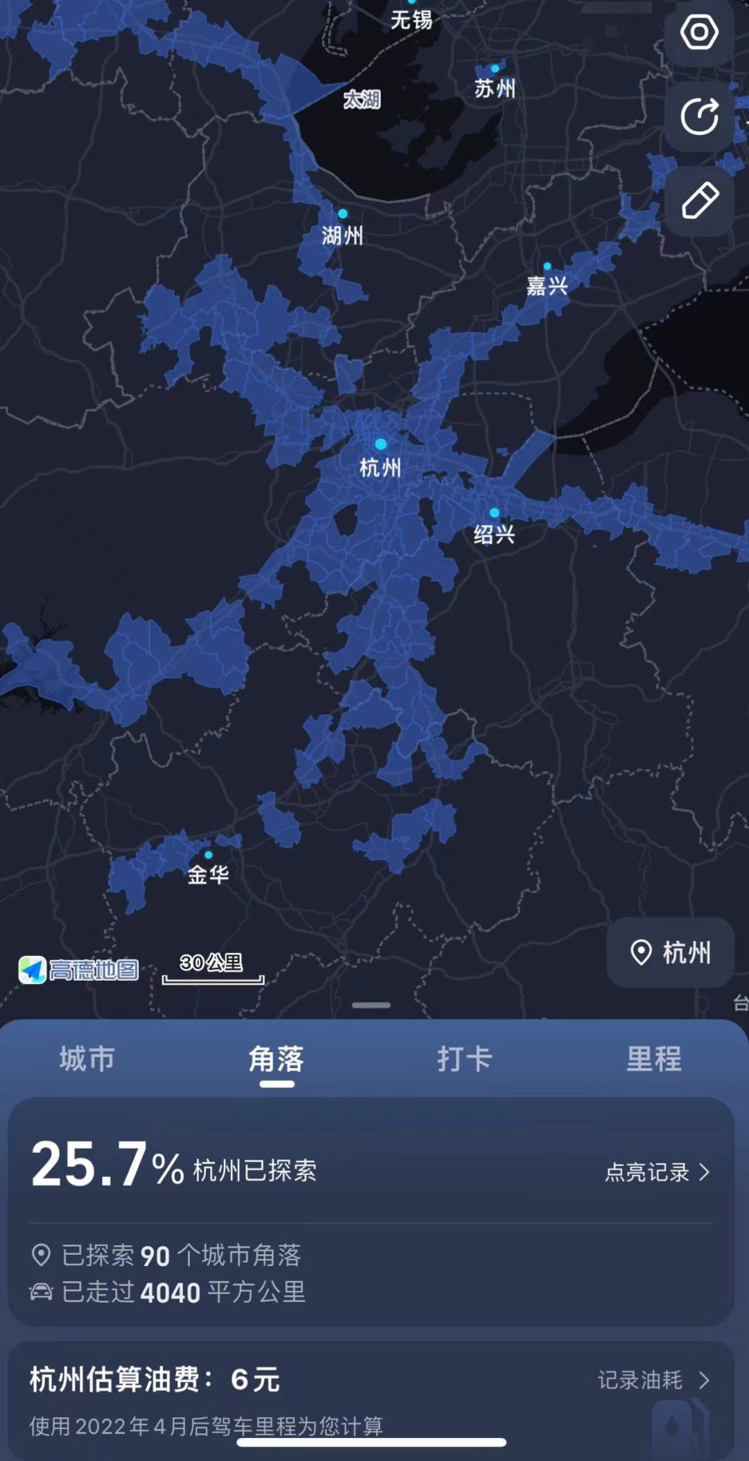 更准确的说,吸引我的是高德地图的地图解锁/城市打卡功能。