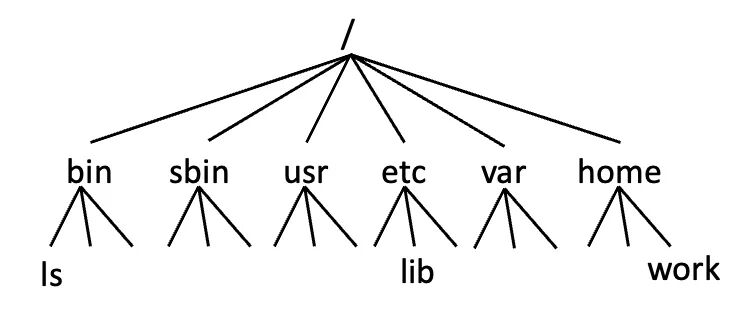 文件系统的定义是一种采用树形结构存储和组织计算机数据的方法,这个树形结构通常被称为层级命名空间(Hierarchical Namespace)。如下图所示,这种命名空间的特点是整个结构像一棵倒挂的树,非叶子结点只能是目录。如果不考虑软链接跟随(follow symlinks)、硬链接(hardlink)的情况,从根节点(/)出发,每一个目录项(目录、文件、 软链接等合法类型)都可以由一条唯一的路径到达。