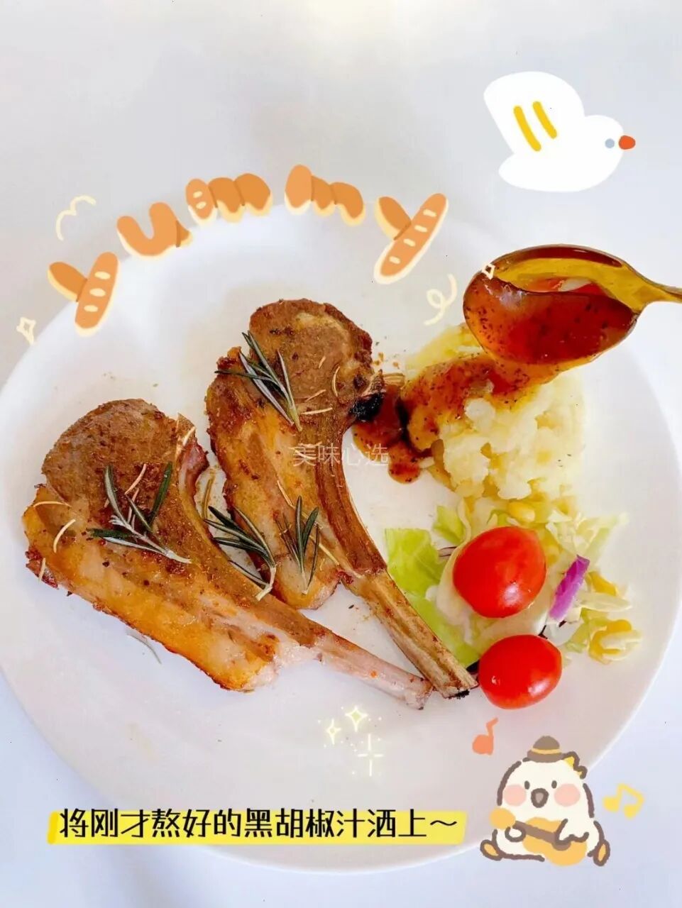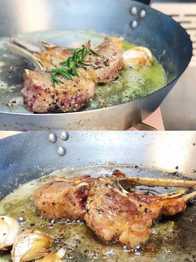 1、羊排提前加入精盐,黑椒碎,香草浸泡三个小时入味2、锅里加入橄榄油,黄油,充分烧热融化之后加入羊排3、改小火继续煎制,撒上黑胡椒入味,两面煎至金黄色5、羊排出烤箱,撒自制香草碎,装盘将酱汁浇在羊排上,开吃![]()