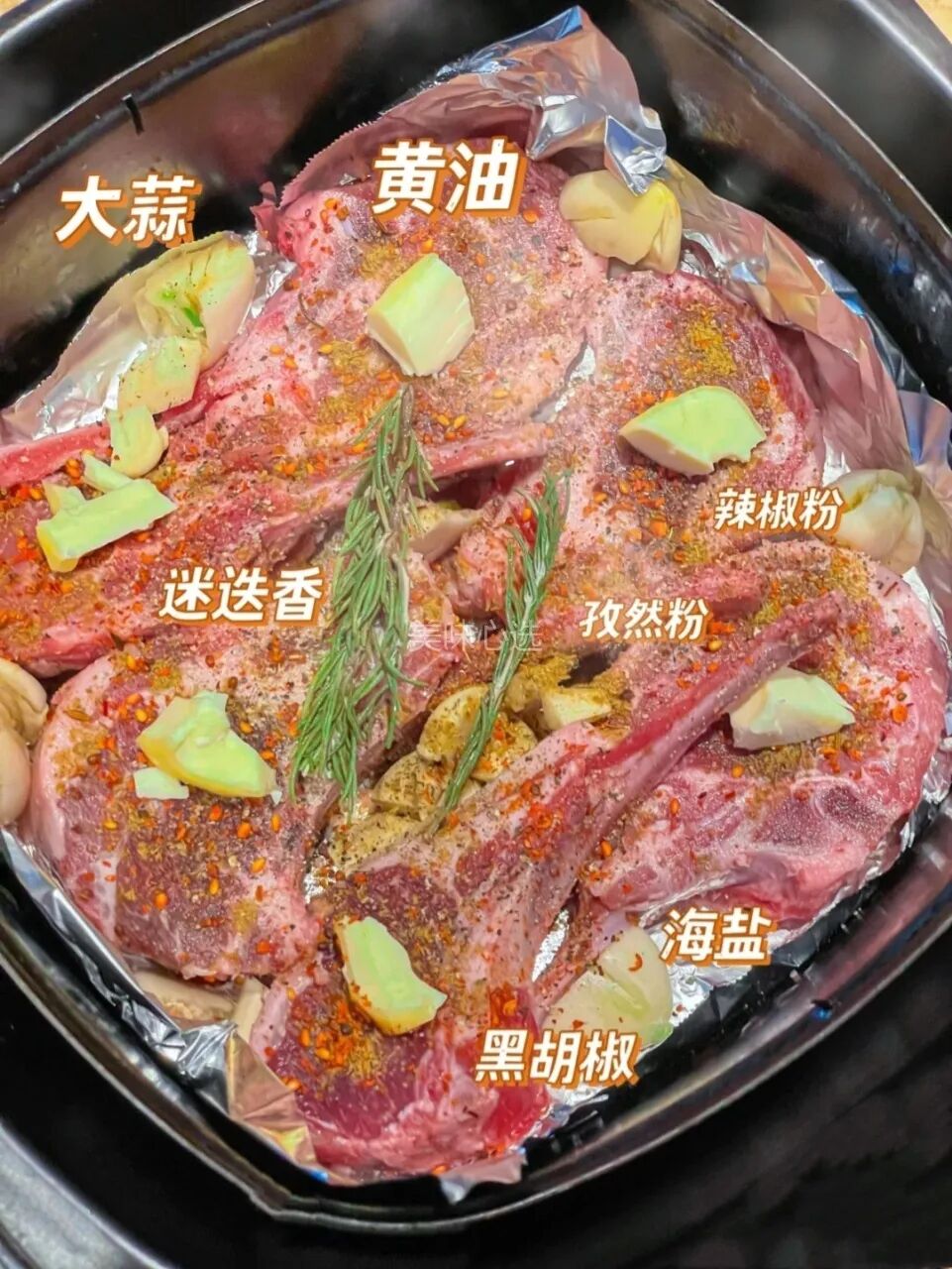 1.空气炸锅底部铺上锡纸,底部垫几瓣紫皮大蒜,放好羊排,加黄油和迷迭香3.烤好后拿出撒上辣椒粉、孜然粉、黑胡椒和盐,继烤5分钟4.拿出翻面撒调料,继续烤5分钟即可