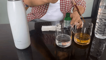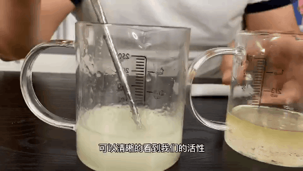 在食用油中分别倒入等量的纯净水和J&S活性水~接着充分搅拌几分钟。