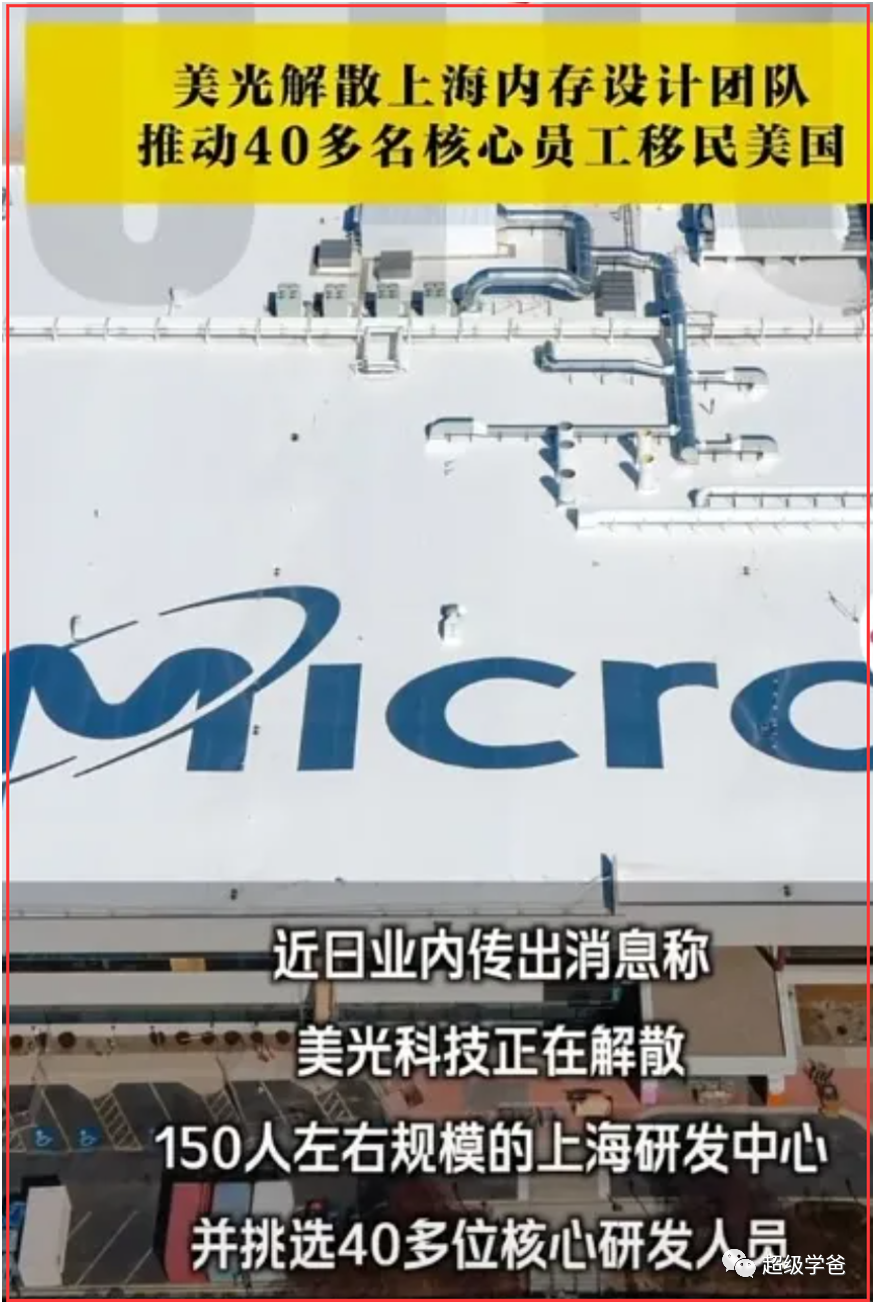 2022年,做贼心虚的美光,解散了中国大陆唯一的研发团队,这个团队只有150人。然而就这么点人,美光也不放过,给其中的40名核心人员发放了技术移民签证。