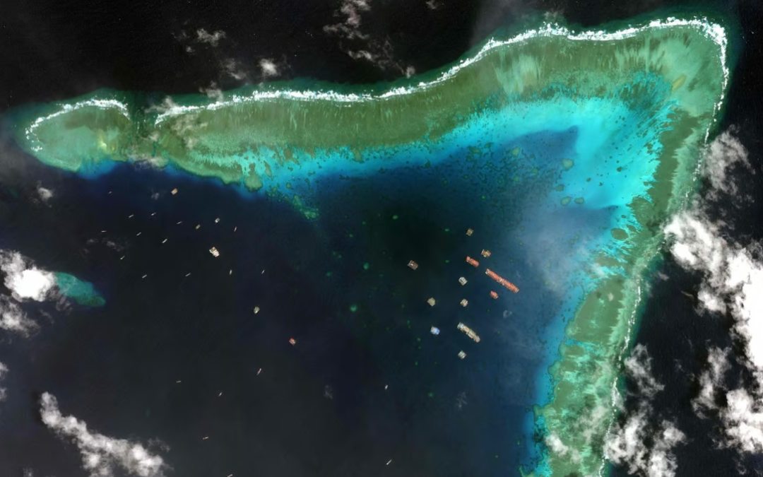 本月中旬,菲律宾海警船在我国南沙群岛5个区域投放了浮标,其中就包括火艾礁和牛轭礁。