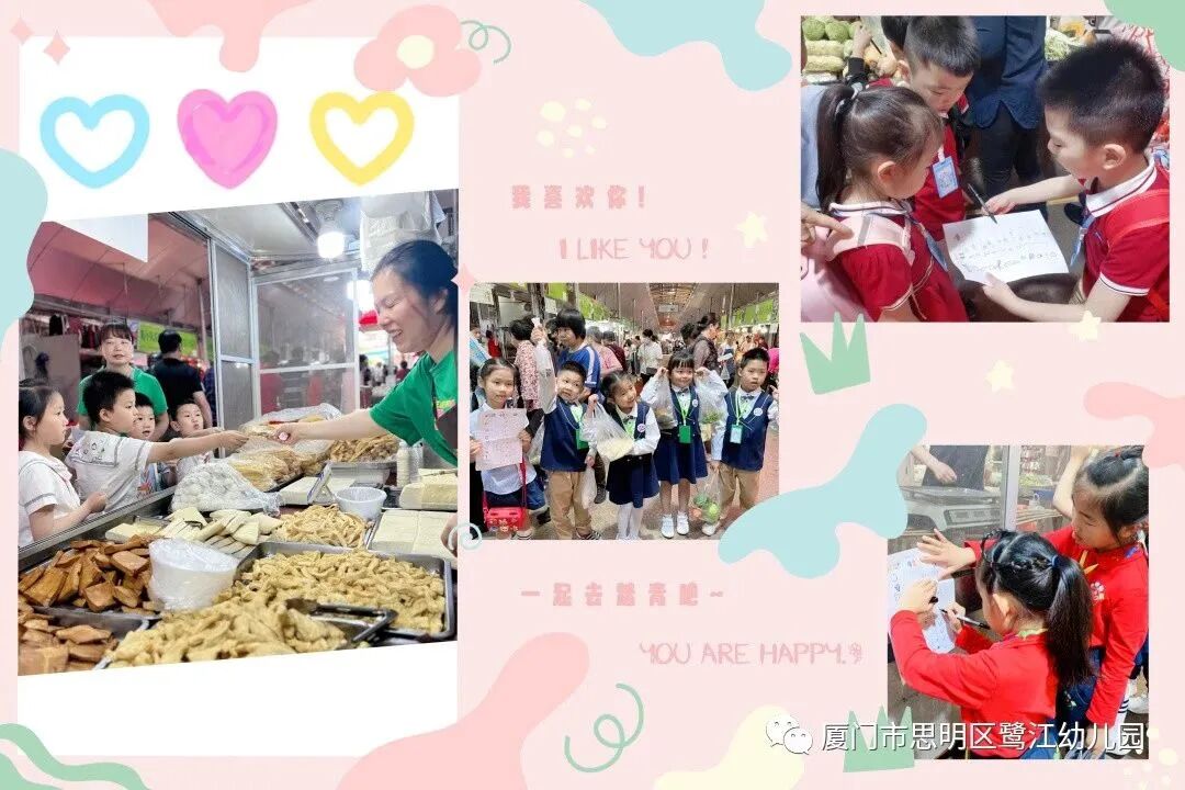 鹭江幼儿园地处繁华热闹最具烟火气的“八市”,菜市场各类蔬菜瓜果、海鲜禽肉及周边的闽南特色是幼儿丰富的课堂资源。我园以“实践育人”为抓手,结合“市场学堂”的课程活动,于2023年5月10日上午邀请共同体的小伙伴们来到鹭江幼儿园,一同结伴逛“八市”选购新鲜食材,共同制作“美味春卷”课程活动。请跟随孩子们一起开启“市场学堂”之旅吧!