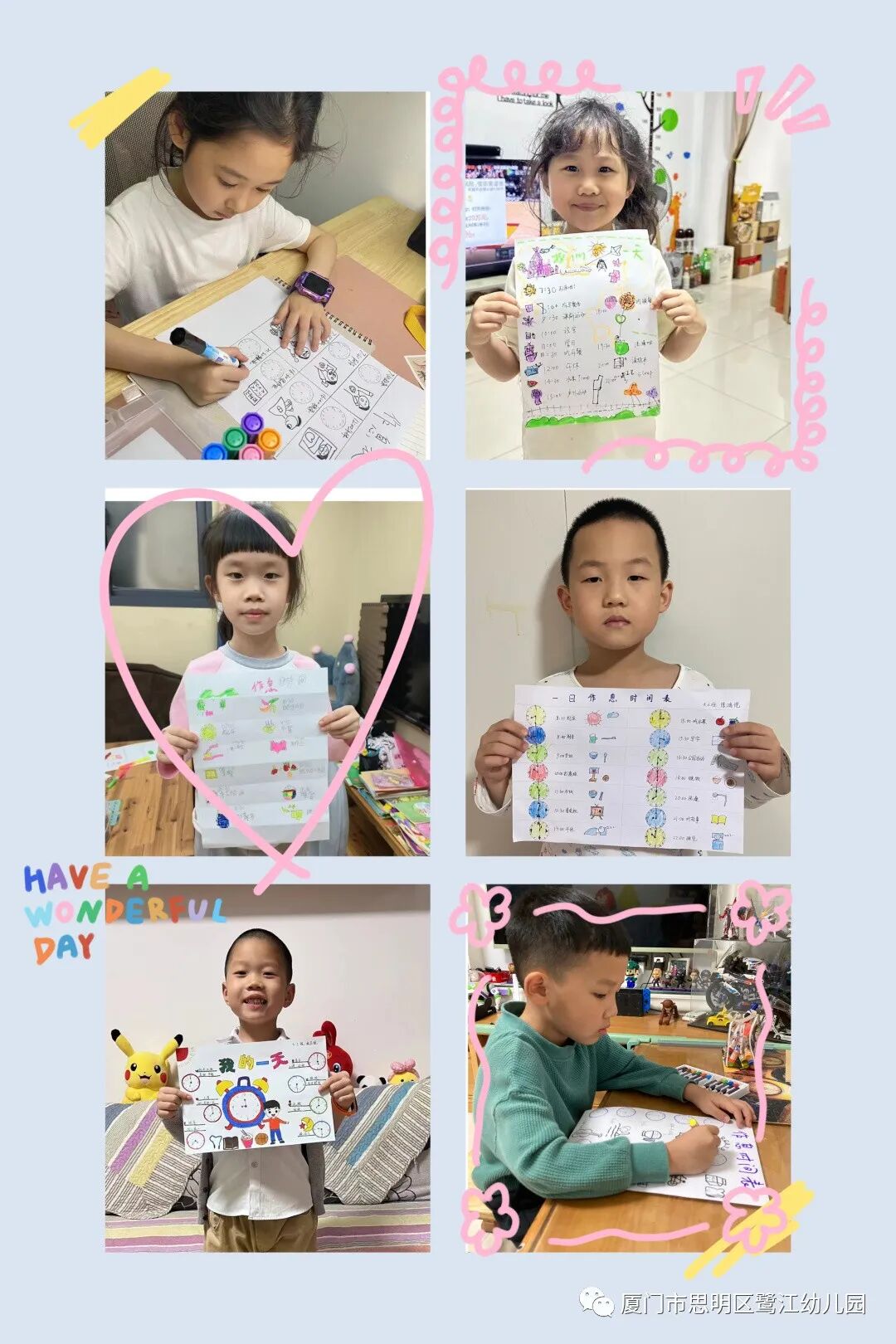 在幼儿园里生活与学习的时候,我们有规律的作息和合理的时间安排。居家的时间变长,我们有了更多可支配的时间,快来看看我们是如何安排一日生活的吧!