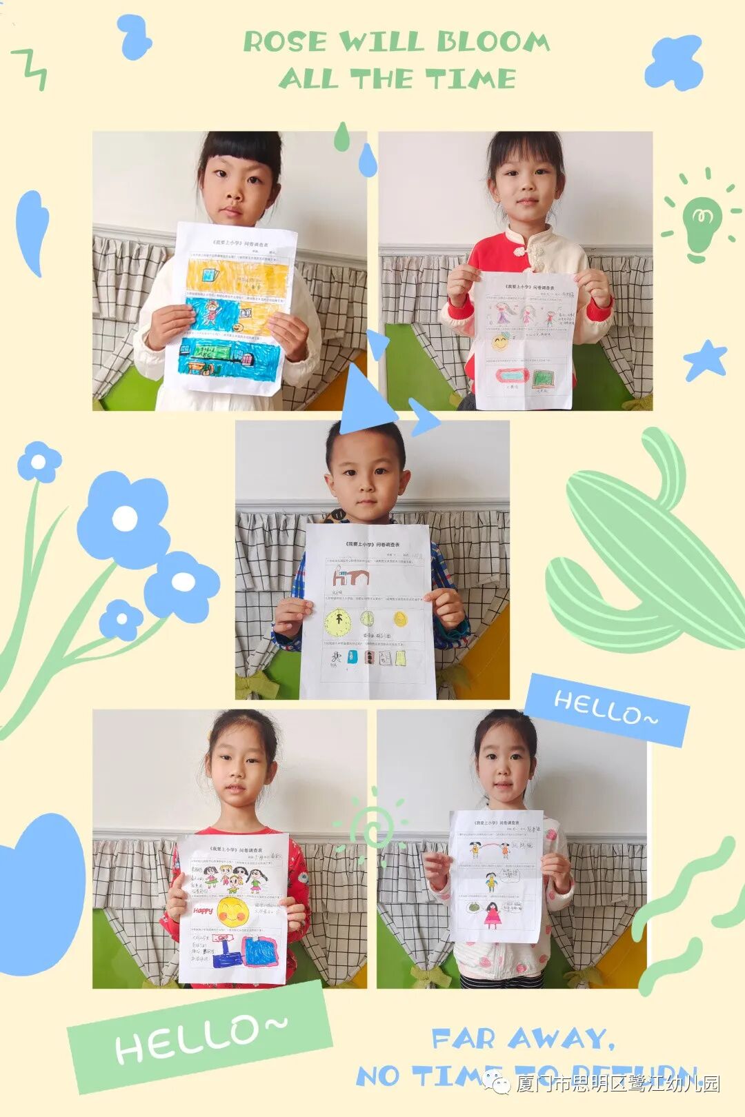 各位小朋友,你乘坐的“鹭江号”列车已经在幼儿园度过了三年的快乐时光,我们即将通往下一站。