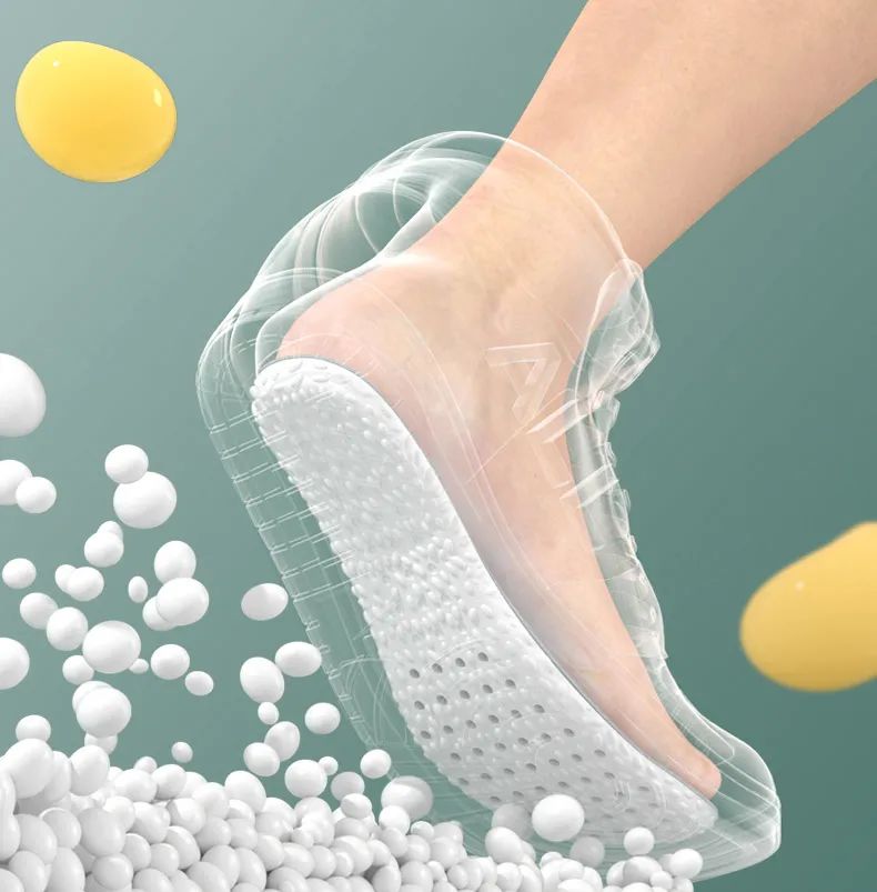 再加上它超强弹力,每走一步路弹出鞋垫内存储空气,就像给鞋底装了个风扇,让你“脚底生风”告别闷热!