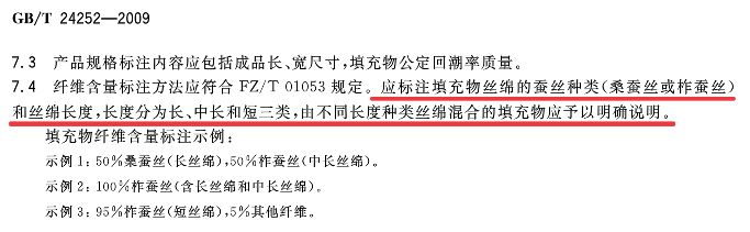 一定要标明填充的蚕丝种类和丝绵的长度。
