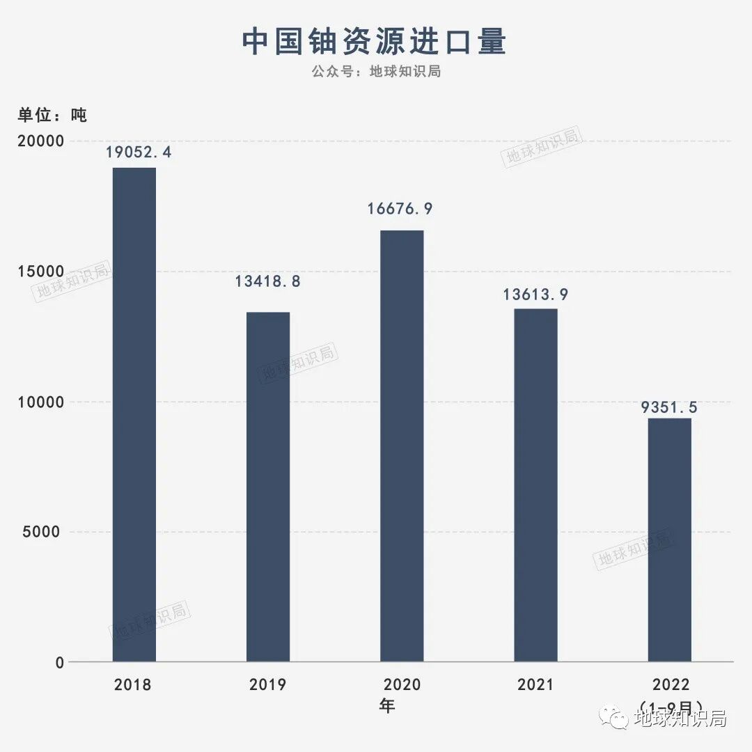 根据联合国国际原子能机构(IAEA)和核能局原子能委员会(NEA)2021年的估算,当年中国的铀需求量高达9500吨,但自主产量只有1800吨。