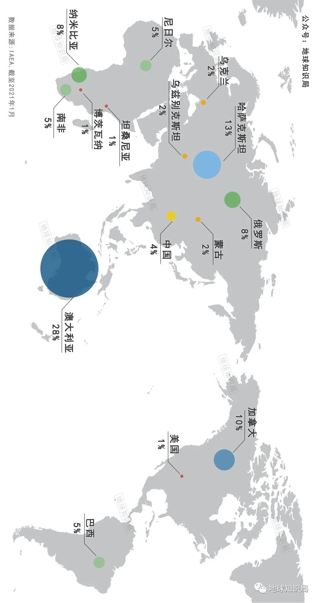 比如澳大利亚的储量占全世界的25%,中国只占4%。