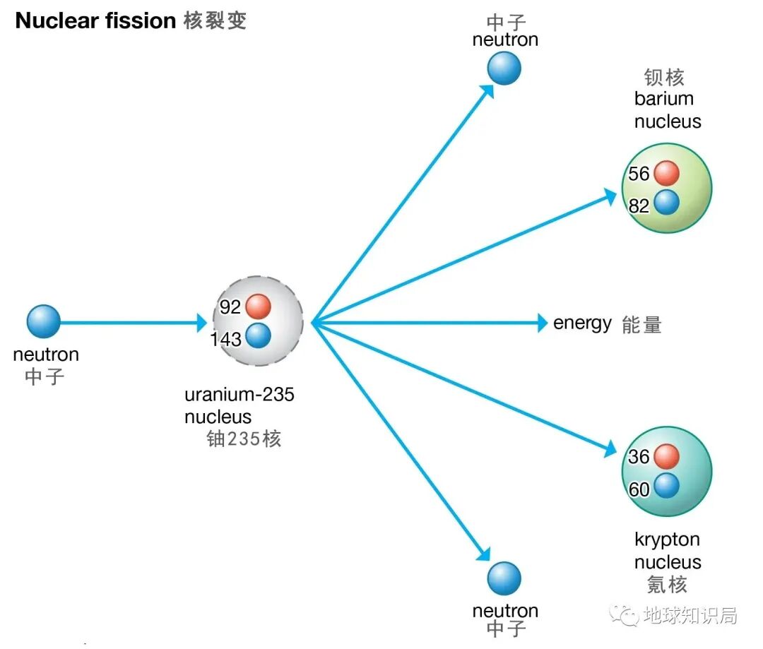 慢速(低能)中子将铀235的原子核分裂成两个新原子核