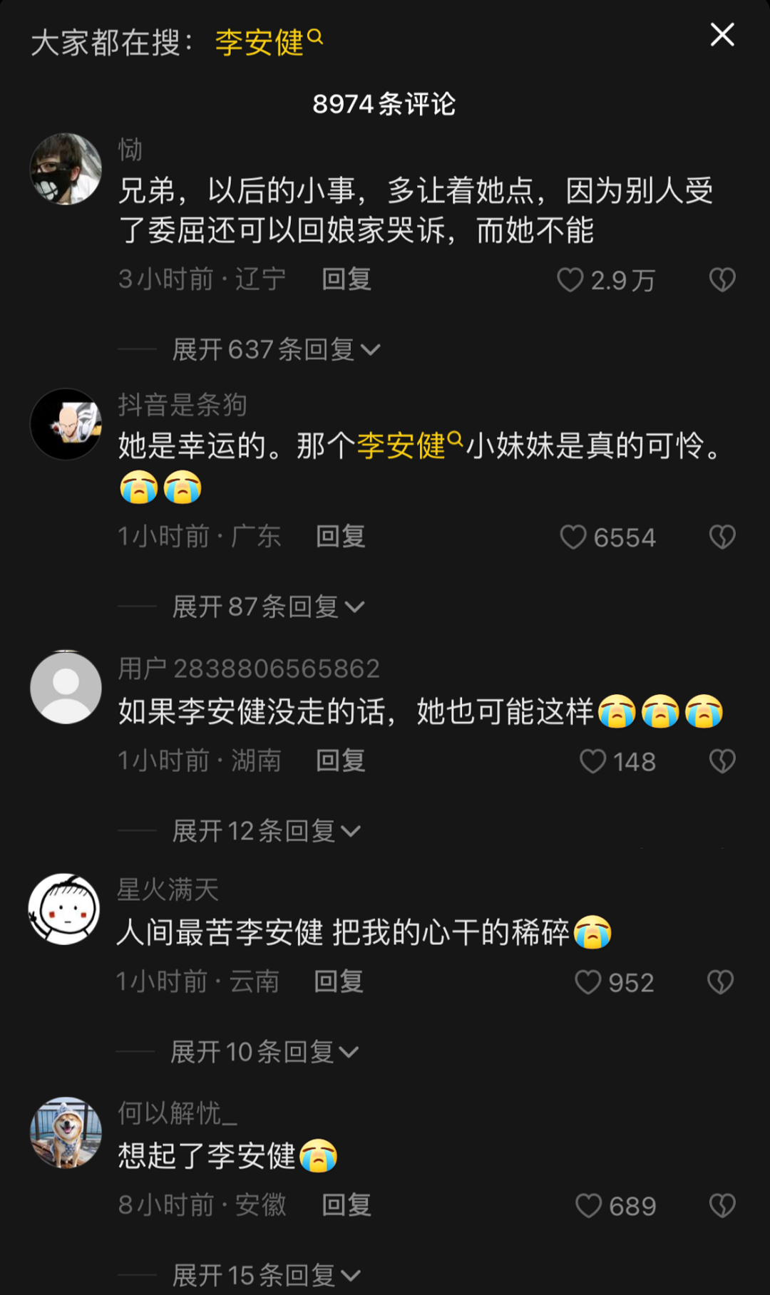 但是,除了关心和祝福外,更多人提到了一个叫“李安健”的女孩儿: