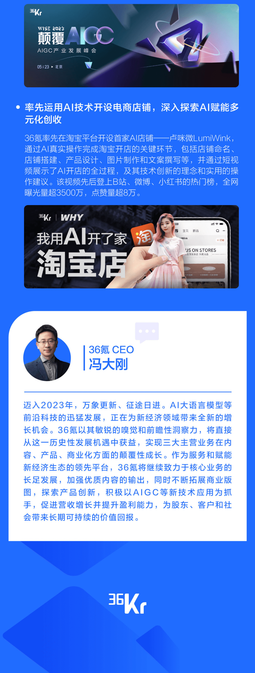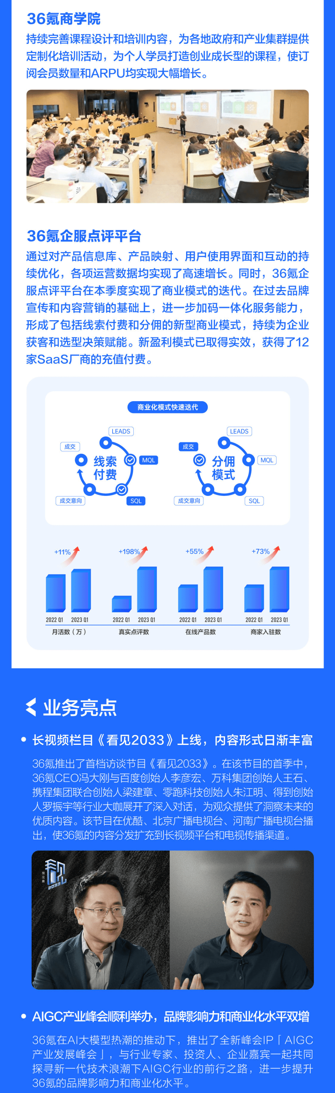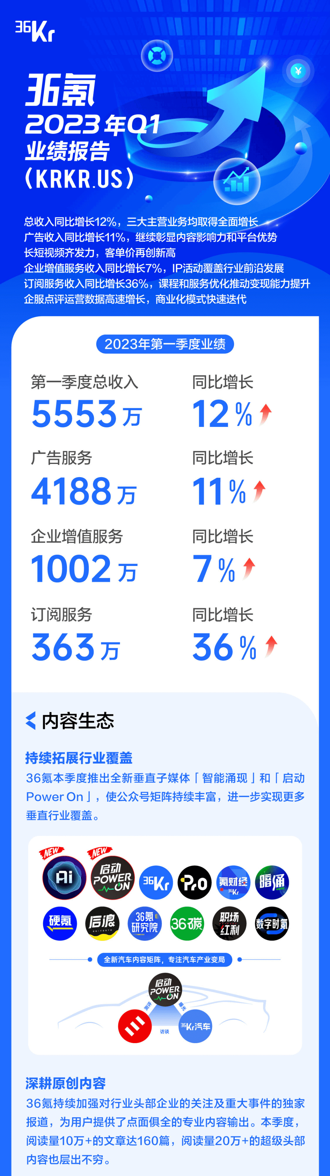 36氪2023年Q1营收大增12%,三大主营业务全面增长,AIGC带来全新发展机遇