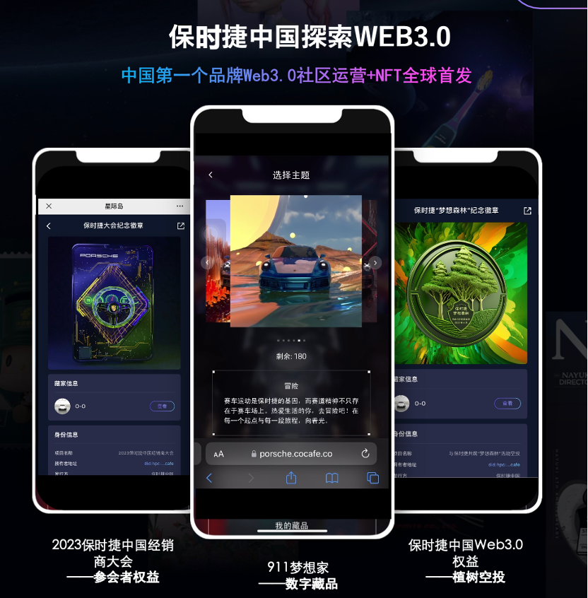 总结来看,咖菲科技主要提供两类服务,一类是标准化SaaS产品,客单价在10万元以下;一类是模块化定制,可以勾选服务和技术能力。在技术和产品优势之外,咖菲科技的另一优势在于自有的咨询、创意、设计能力。咖菲科技创始人&CEO石岚告诉36氪,他们团队目前一半是技术,一半是创意和设计。石岚以服务客户之一保时捷为例,具体解释他们是如何帮助客户实现元宇宙营销价值的。在她看来,与保时捷此次合作,有三个特点:全球同步、碳追踪、社区运营。在加密数字相关领域,国内和海外有不同的生态系统和法规,这使得国际品牌很难在全球各个市场达成一致,实现全球同步发布。今年1月23日,保时捷德国总部推出911系列基于以太坊体系的NFT,同一天,咖菲科技帮助保时捷同时发布中国特别主题版本——在中国的联盟链上以合规的方式。项目在数字藏品铸造的过程中跟踪和计算了碳排放足迹,并在沙漠地区为保时捷中国 Web3.0 社区居民建立一个真正的“梦想森林”,以中和掉由此产生的碳排放。这也实现了全球大企业都在追求的“碳中和”目标。而社区的长效运营是在NFT发布之后,所有拿到NFT的人成立了Web3社区,可以后续参加保时捷的其他活动,比如新车试驾、总部参观等。保时捷作为全球范围内的高端品牌,对于营销体验要求自然更高。过程中,咖菲科技提供了多种产品、底层技术的支持,以及在区块链上建立了专属站点,后续消息发布、购买行为、社区运营都以该站点为主。另外,普通的营销宣传咖菲科技也在提供,比如小红书、B站这类社交媒体的曝光。