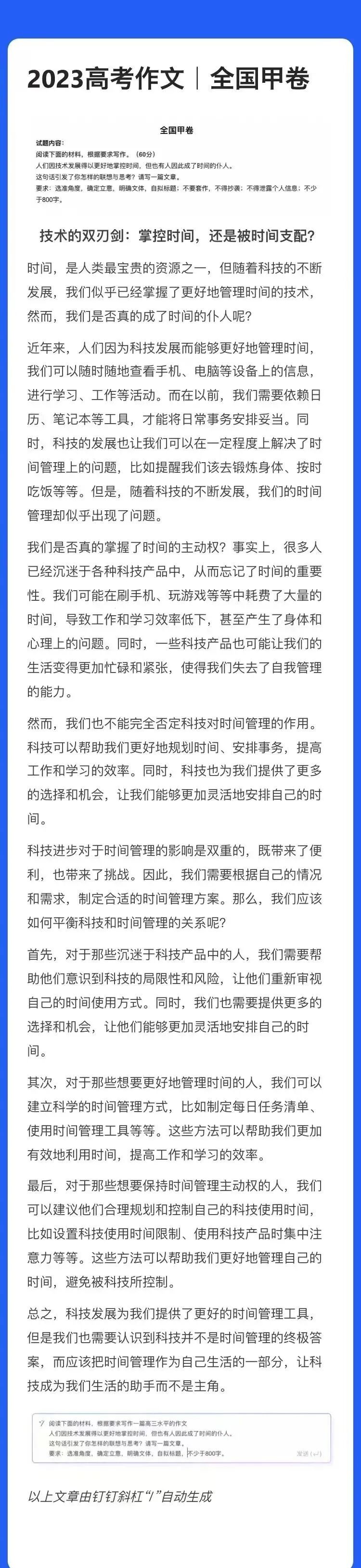 今天中午十一点半,2023 年高考作文题目火热出炉,其中全国甲卷作文题引人深思: