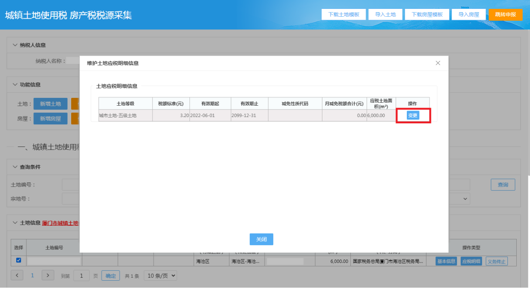 登录电子税务局,逐次点击:我要办税-综合信息报告-城镇土地使用税税源信息报告-税源采集,进入采集界面,变更应税明细。