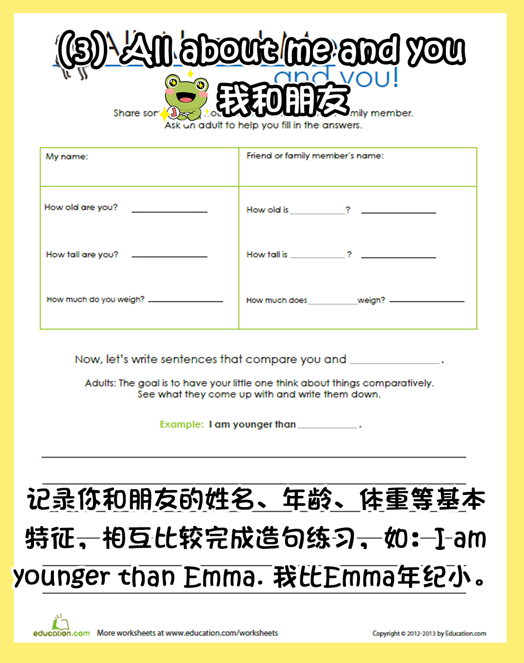 有趣的是最后还有All about me and you,关于我和我的朋友,加深孩子们之间的相互了解,让友情更加牢固哦~