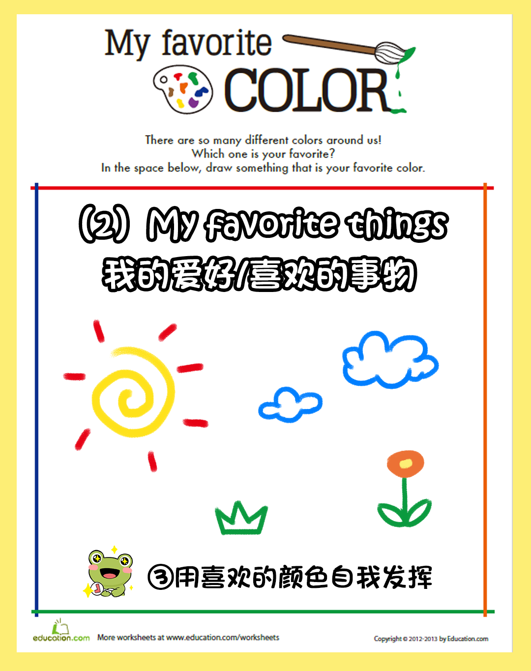 作业纸有彩色和黑板版本,彩色适用于课堂完成,黑白版可以带回去上色后完成哦!还可以让小朋友对着作业单练习演讲!