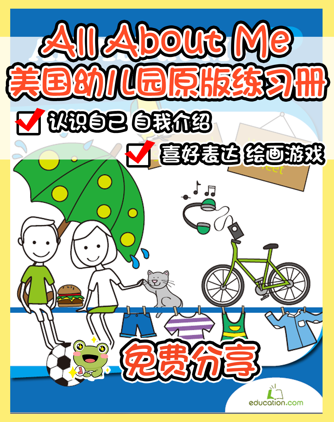 然妈今天分享一套自我介绍《All About Me》作业纸、课件、卡片等,内容超级丰富,画风也十分可爱,让孩子们学会自我认知、喜好表达,同时也是非常有趣的绘画游戏,一起来完成这套自我介绍的制作吧~