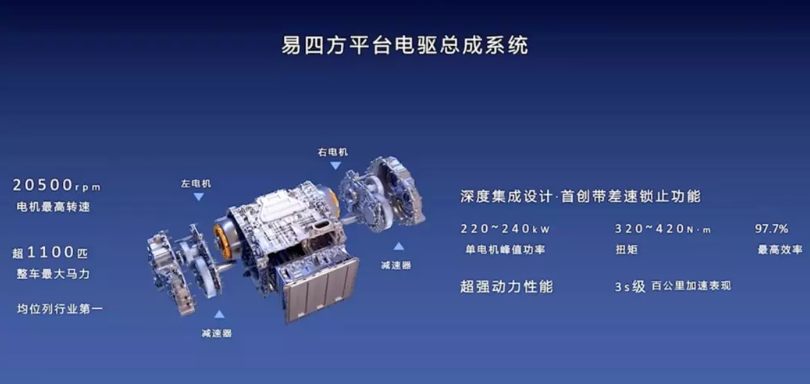 你有没有想象过,如果汽车把发动机,直接装到轮子上会发生什么?这就是国产电车厂商比亚迪在2023年初拿出来惊艳全世界的百万级豪车:仰望U8。很多人只是觉得国产厂商能做出这样的豪华车,这样的功能,很酷。但其实,仰望U8真正高端的并不是价格,而是它背后那些可能改变整个行业的“新技术”。甚至,比亚迪可能会凭借U8彻底改变当前电动车行业的格局。而这一切的一切,都要从仰望U8应用的四轮独立驱动的轮边电机技术开始讲起。传统汽车,不管是燃油车和电动车,一般都是“集中式驱动”。简单来说,就是动力需要经过传动轴和差速器等传动部件,最终驱动左右两边的车轮,复杂且低效。 而仰望U8应用的分布式四轮独立驱动技术,则是把驱动电机直接装到车轮边上。不止是电机多了,或者换个位置这么简单,而是直接拥有了在燃油车时代很难想象的原地掉头、高速爆胎控制等等“超能力”当然,还有一种技术方案是直接把驱动电机装到轮毂当中,这个我们后面会提到。单电机最大功率可以达到220-240kW,最大扭矩320-420N·m,整车最大马力超1100匹。举个不太恰当的例子,马力甚至已经快赶上T-90M“突破”主战坦克了。根据官方数据,仰望U8完成零百加速(即0-100km/h加速)已经达到了3s级。加速性能一直是汽车核心实力的代表,更是很多豪华跑车标榜的核心能力。而未来,随着比亚迪轮边电机的配套技术成熟,这个数据还可能进一步提升。其次,轮边电机还可能会颠覆当前汽车的“形态”,甚至传统的方向盘和刹车装置都可能被淘汰。由于能实现四个车轮的独立矢量控制,控制的精细化程度更高,以往我们需要刹车卡钳配合刹车片等来完成车辆的制动。而现在电机可以直接对车轮输出负向扭矩,让车辆快速停下来。而且哪怕不依赖转向器,通过四电机的差动控制,给内外车轮提供不同的转速,如今也能实现转向。当然,目前的技术和法律还不允许我们上来就这么大胆。但有了这俩制动和转向上的“冗余”,我们平时开车的操控性和安全程度起码能上升一个档。当我们在高速情况下不慎发生爆胎时,传统燃油车由于驱动轮只能同向转动,再加上控制数据反馈时间长、扭矩调整慢等原因,汽车很容易瞬间发生失控。万一某个轮胎爆了,剩下三个车轮还有抢救的机会,可以迅速单独调整扭矩,甚至任意输出负向扭矩,稳定车身姿态。除此以外,四轮独立驱动技术,还能让电动车解锁更多高难度动作:比如通过独立控制两侧车轮反向转动,来实现“原地掉头”。有了这技术加持,侧方停车都会更简单,以前很多刁钻的停车角度也不再是问题了。发布会上跟螃蟹一样横着走的仰望U8,其实还用到了麦克纳姆轮。简单来说,它是一个特殊设计的轮子,胎面布置了很多斜面滚轴,可以实现横移、斜行等等看起来非常好吃的运动方式。在燃油车时代,一辆车一般只有一台发动机,早先的电动车大多也是在传统燃油车的基础上演变过来的,只配备一到两台电机,并且需要通过传动轴和差速器等驱动左右两边的车轮:除了比亚迪目前在用的轮边电机方案,其实还有更加终极的轮毂电机方案。也就是,直接把电机装到车轮内部,直接把动力传递给车轮,铁锅炖自己,这样一来效率就更高了。其实,我们身边的电动自行车,早就大规模普及这项技术了。但是,应用到汽车上,目前还不够成熟,因为它会增加簧下质量,降低操控性,容易加剧车身摆动和震感,而且由于集成度过高,轮毂电机的散热、维修以及制造成本等方面也都存在问题。这项技术,终究还是因为过于大胆,没能在汽车界普及开来。为什么是比亚迪成为了敢为天下先的那个走螃蟹步的车呢?燃油车时代,发动机由于体积大,以及成本等方面的考量,不可能一下子放四台。电动车虽然电机的技术限制被解开了,但更难的地方在于电控。在一个雨雪天,你开着电动车一路向西,路上有沙石、积雪、融水,车轮的摩擦力每时每刻都在发生变化。这个时候,要怎么保证汽车能瞬间精确完成轮端和路面状态的识别,又怎么保证能把数据及时传到控制器,以及保证计算准确并精准调节每个电机的扭矩?除此之外,由于是四台大功率电机同时运转,瞬时功率会很大,对电池也是一个巨大的挑战。这不是单纯做四台电机或者四个轮子就能完成的事情,而是需要一整套系统的硬件、算法的配套支持,以及年复一年的投入和打磨。但,这次,在电动车的技术领域,我们确实走到前头了。比亚迪推出的的易四方技术平台,它全系标配SIC(碳化硅)电控,最高效率99.5%。能够以更高的运算能力和控制速度,实现更大的电流输出以及更小的功率损耗。同时融合了惯导、电机旋变、转向、胎压等整车传感器以及激光雷达、毫米波雷达等智驾传感器,让车辆能够快速准确地接收各种数据,快速感知路面状况,而且通过中央计算平台还能实现对每个车轮的驱动力大小和方向的矢量控制。至于电池技术,比亚迪起家就是做电池的,完全不用担心。过去,在燃油车时代,我们起步较晚,汽车最核心的三大件——发动机、底盘、变速箱,和国外差距极大,发展起来处处受人掣肘。市场是让出来了,最核心的技术却依旧要仰人鼻息,有些关键零部件还得从国外进口。但是在新能源时代,在另一条起跑线上,我们不一样了。到了今天,电动汽车核心的三电系统——电池、电机、电控,逐一被我们国内企业攻克。我们不仅拥有全球最