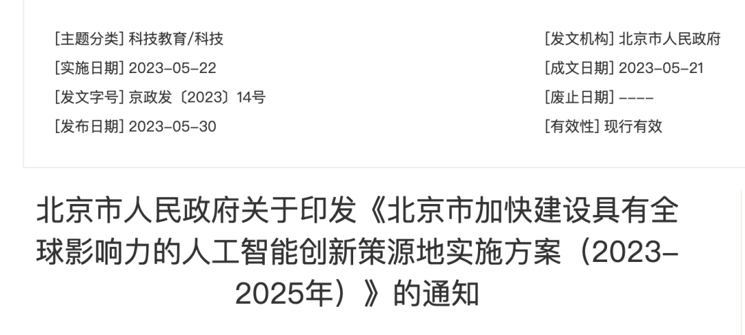 ▲北京市发布《北京市加快建设具有全球影响力的人工智能创新策源地实施方案(2023-2025年)》
