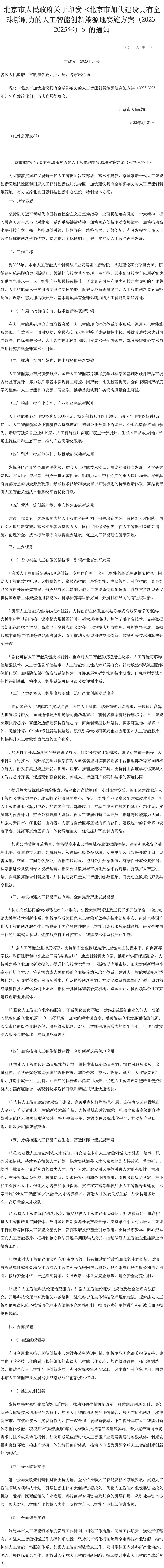 《北京市加快建设具有全球影响力的人工智能创新策源地实施方案(2023-2025年)》原文截图