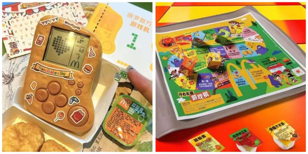 但是在六一儿童节,走进一家麦当劳,发现麦乐鸡还是原来的价格,20元20块麦乐鸡,甚至搭上了四款不同风味的麦乐鸡蘸酱,刹那间似乎又回到了童年,回忆起了那时简单而纯粹的快乐。大人们仿佛变回了小朋友,而对于小朋友来说,一天之中,有麦乐鸡就够了。再加上超低门槛就可以获得的限量麦乐鸡俄罗斯方块游戏机,让“小朋友们”在享受开心乐园餐的同时,不用考虑消费压力轻松获得麦乐鸡游戏机,说不定还有“麦乐鸡侠”偷偷给你带来惊喜哟。麦麦此举把快乐埋进了每一位大人小孩的心中,让所有顾客不分年龄,可以“一起开动,同款童年”!