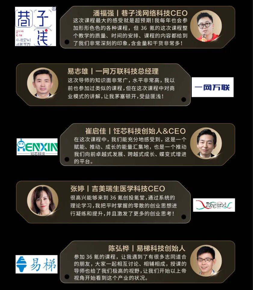 36氪以赋能新经济参与者,实现更高的成就为使命,倾力打造了为创业者提供学习交流的商学院平台—创投氪堂。创投氪堂通过知识赋能与资源整合,助力每一位新经济下的创业者成为行业领跑者。我们将通过公开大课,加速营,数字化产业升级营,独角兽进化营,私董会,咨询,企业参访,城市论坛,投融资对接会等一系列的加速服务,帮助企业链接智慧,打通资本,对接资源。![]()