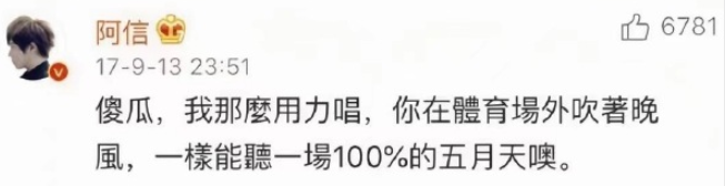 当然,这饭菜不是五月天发的,上班费也并非进了五月天的口袋,但对五迷来说,遇到一个失职的主办方,真的会很扫兴。