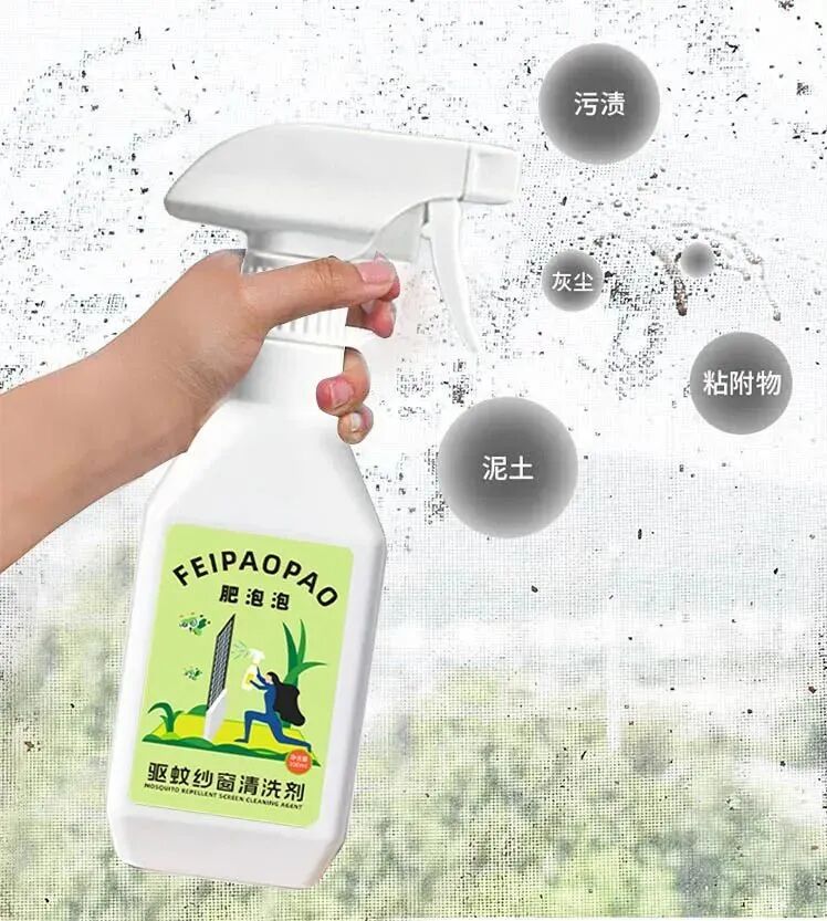 本款纱窗清洁剂采用温和配方,泡沫型清洁,温和舒适;清洁脏污,延长纱窗使用寿命,10年都不用买新纱窗了!(注意:铜 铝 漆面 涂层 铝合金材质 不可使用!如不慎喷上,请务必在尽快用大量清水擦拭干净。)