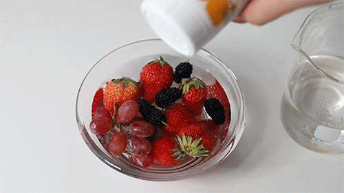 密密麻麻写满了字,从原理到使用方法都给你讲得明明白白,真的让人放心。然后再放入果蔬和肉类或者其他东西,浸泡5到10分钟后,取出简单冲洗一下就好!提醒一下,像杨梅、西蓝花这种,担心里面有虫子的,可以用它多泡一会儿。![]()
