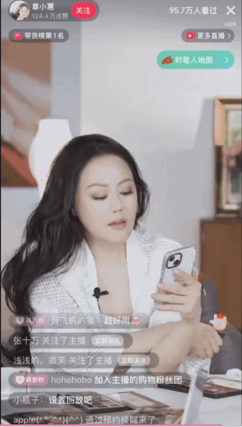 5 月末,章小蕙在小红书开启首场直播,时长近 6 小时热度超 6 亿;据小红书数据显示,这场名为“玫瑰橱窗”的直播超 100 万人次观看,销售额超过 5000 万元,一举打破此前董洁 6 小时带货 3000 万的纪录,不过董洁最新单场 GMV 破 7300万又完成了反超。