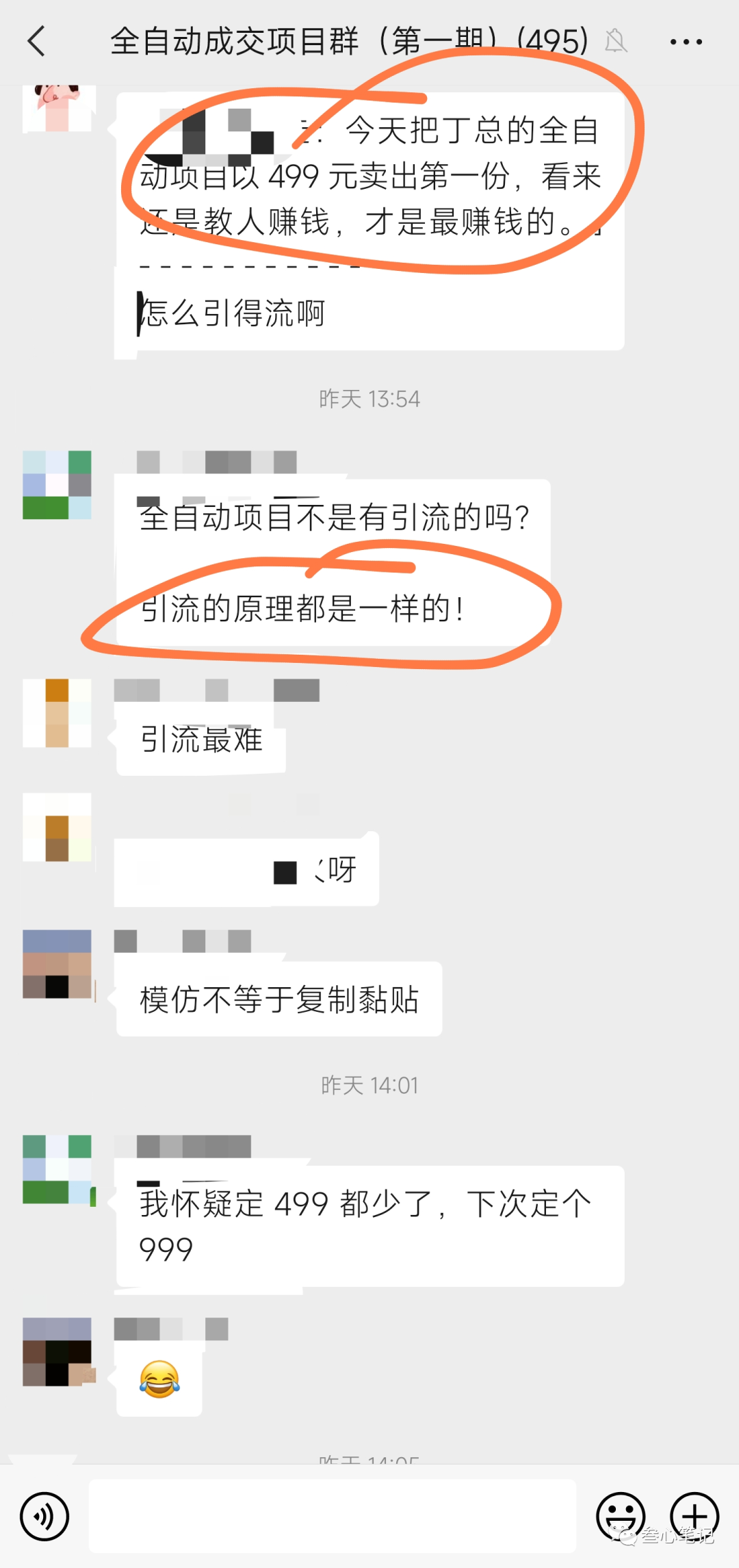 这不,昨天全自动成交项目群的朋友又来说把我的教程给卖出去了。