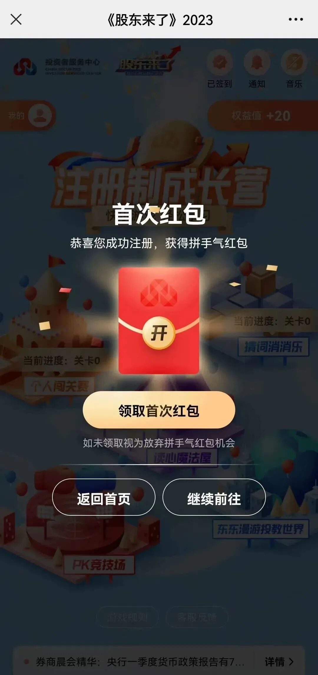 用户进入该板块可分片区浏览国家级投教基地,进行答题或抽取红包。每个投教基地设有2道题目,题目形式为选择题,无倒计时,不设置过关门槛,答题正确继续答题直到完成所有题目;答错则提示正确答案,用户可继续答题,直到完成所有题目。