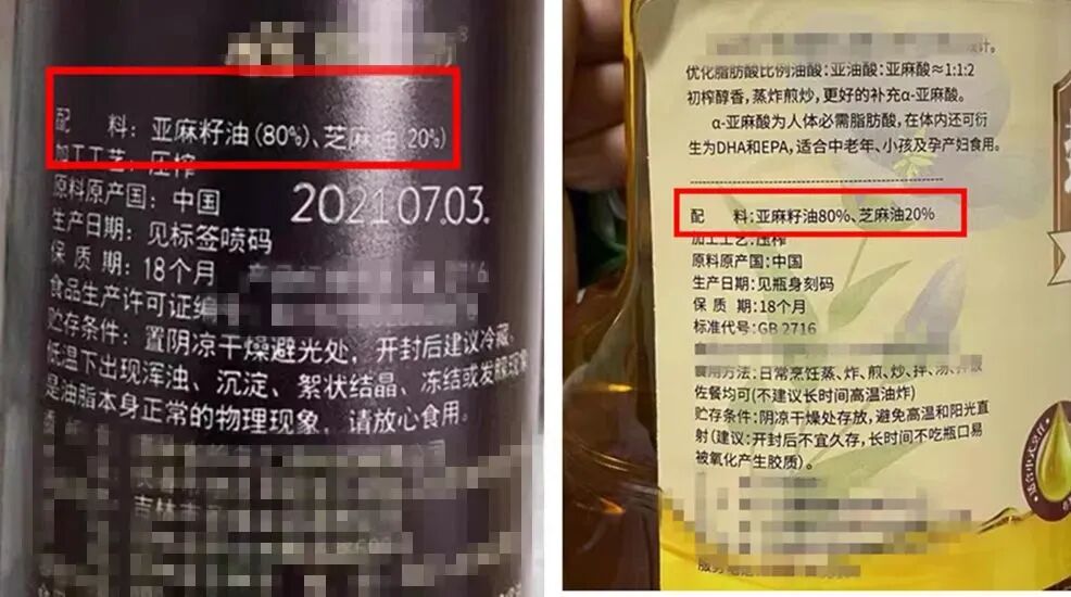 市面上有些虽然也叫亚麻籽油,但仔细看配料表,还会为了降低成本添加别的油脂,以次充好!