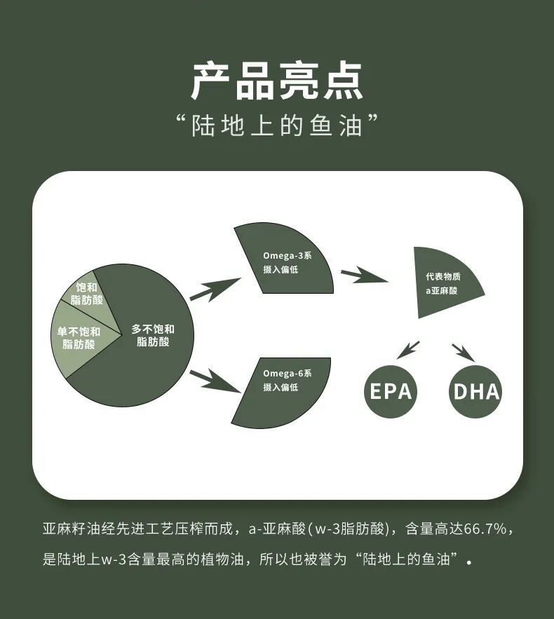 100%亚麻籽油制作而成,无任何添加,所以α-亚麻酸才有66.7%!