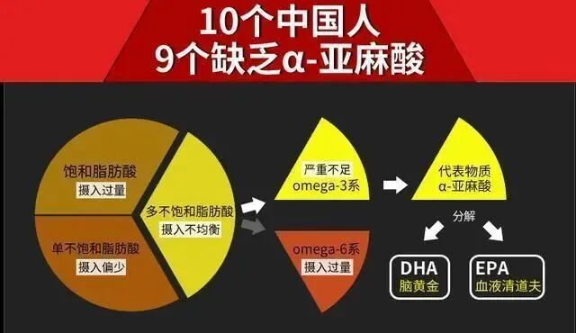 因为在中国,每十人中就有九人严重缺乏α-亚麻酸,它在体内不能合成,只能从食物中摄取,而我们日常经常吃的食物中含有α-亚麻酸都极少!