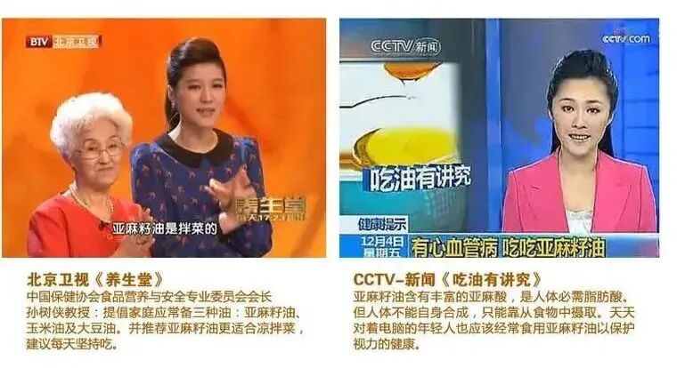 在我国,北京卫视《养生堂》、CCTV等,都在节目中宣传并推荐健康食用油——亚麻籽油。