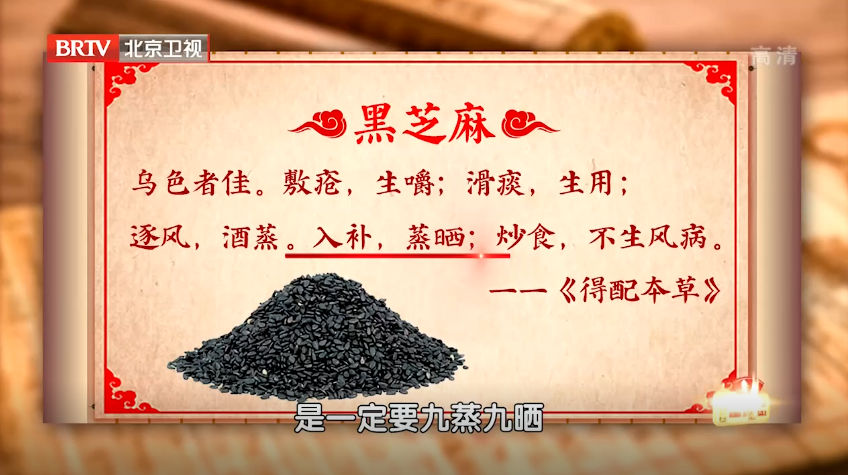 北京中医药大学继续教育学院院长傅延龄老师就在节目中提到黑芝麻可以补五脏、利血管、强筋骨!