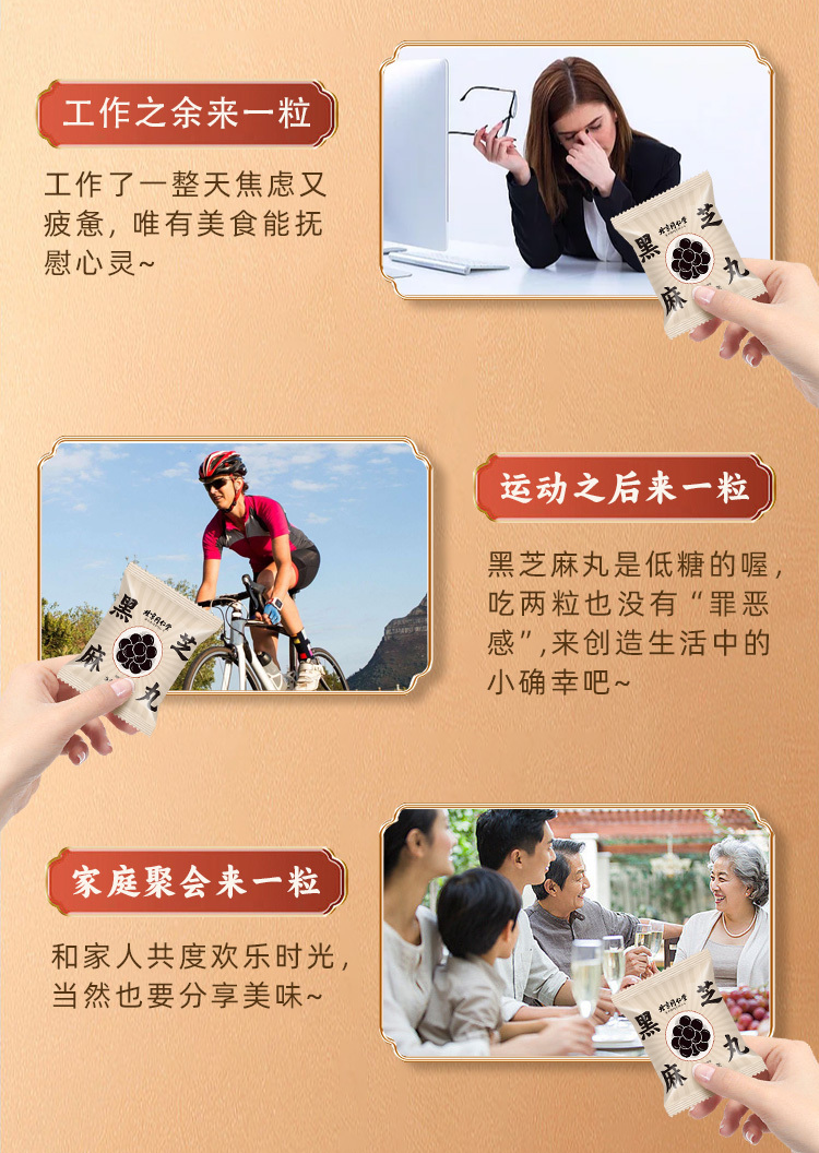 ④早晨来一颗当代餐,晚睡前吃一颗缓解饥饿,口感醇香,补充“黑色能量”,带来好睡眠、好骨骼、好发质;