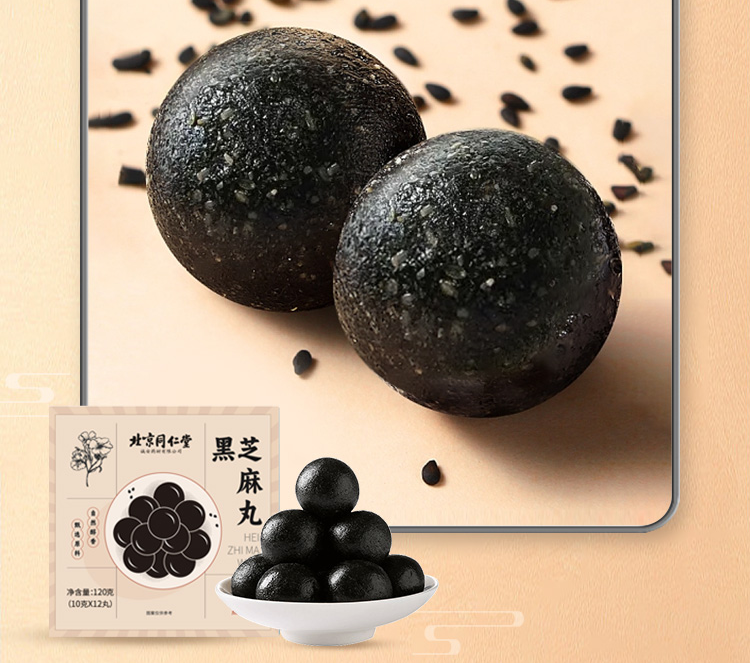 黑芝麻经过九蒸九晒,制成黑芝麻丸,更易于人体吸收,脾性更加温和,久服也不会上火。