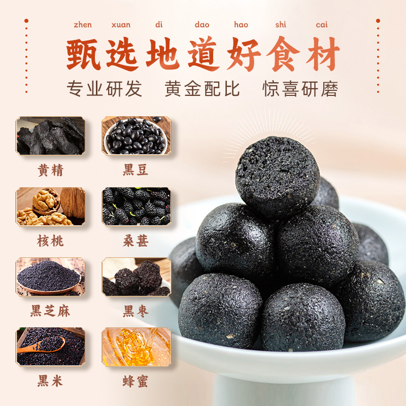精选天然健康的黑色食材,为了保障效果,原材产地都是精挑细选,粒大饱满,看得见的品质~