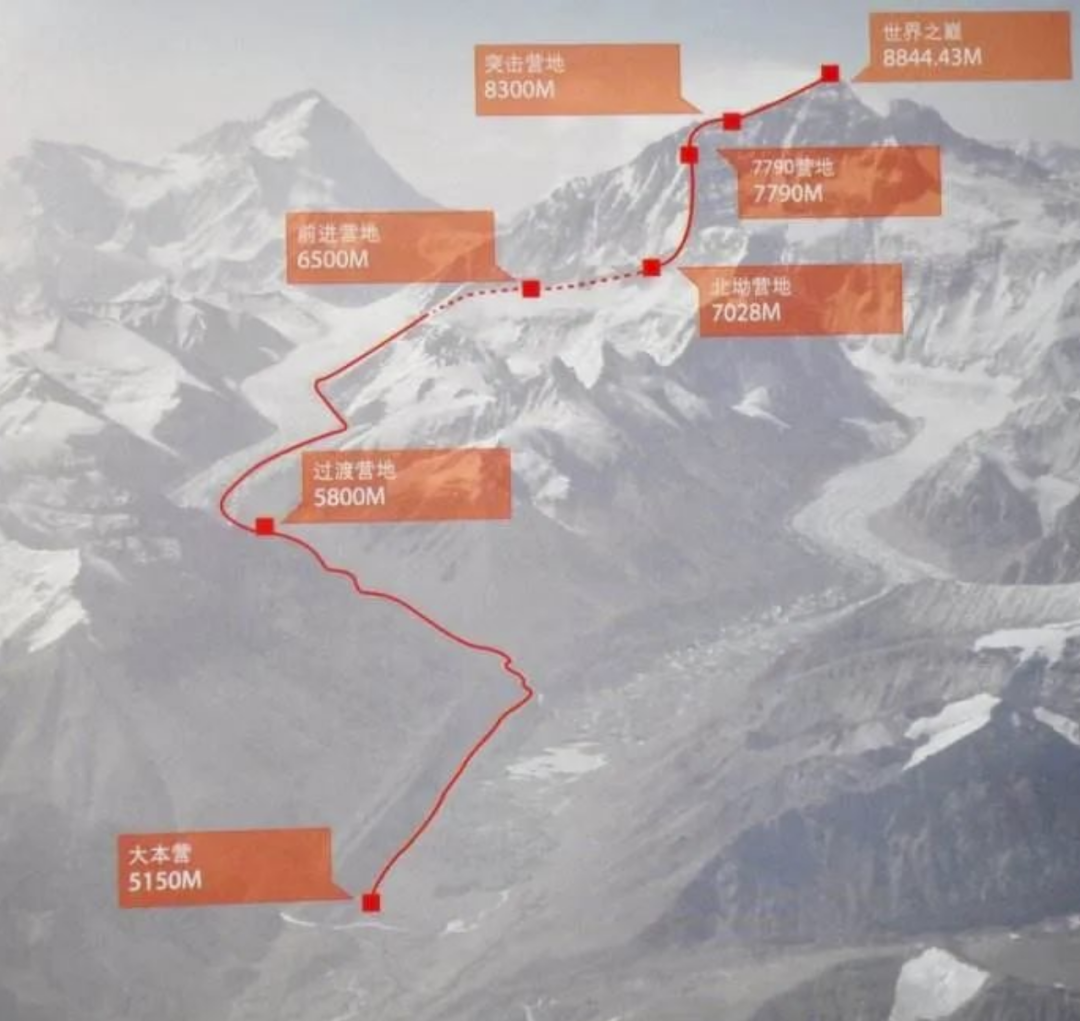 终于,在5月18日晚上8点左右,他登到了珠穆朗玛峰海拔8450米处。