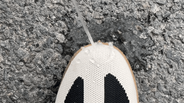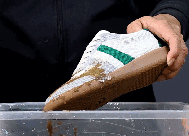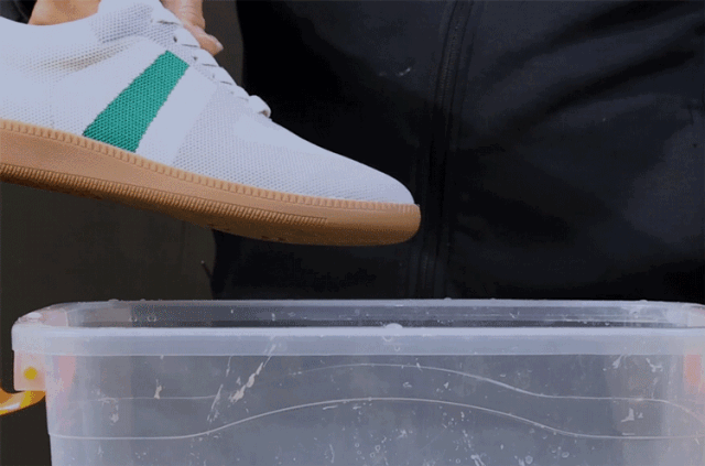 小编迫不及待做了个实验,把鞋子放进水箱里也没有打湿,这防泼水真的杠杠的~