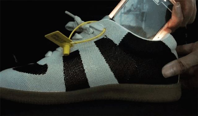鞋面上还有成千上万个密布气孔,上脚真的很清爽!(小编用手机的手电筒照了下,能清晰的看到)