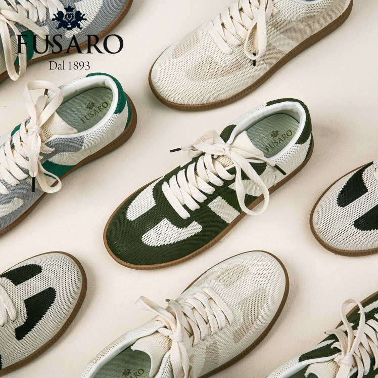 2022年,FUSARO集团携手富萨罗国际(温州)有限公司开启探索中国市场之旅,志在研究了解中国市场客户需求设计出了这款符合中国人品味的好产品——意大利FUSARO情侣飞织德训鞋