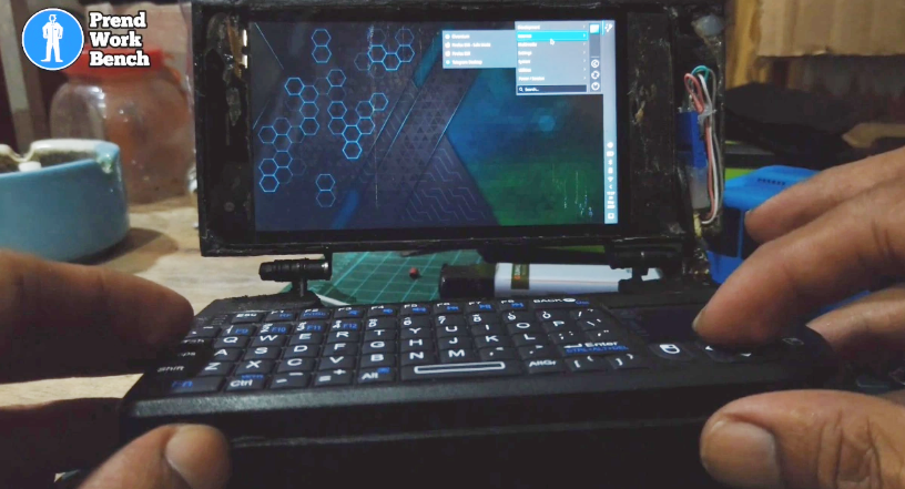 为了让这台机子有笔记本电脑的模样,该达人额外连接了一个带 Rii X1 蓝牙迷你键盘的键盘组件,内置 4000mAh 容量电池。