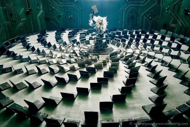 艺术家 Benjamin Von Wong,利用近 2 吨的旧手机和旧笔记本,制作出几件超现实主义的雕塑,让这些废旧电子设备成为酷炫的艺术品。