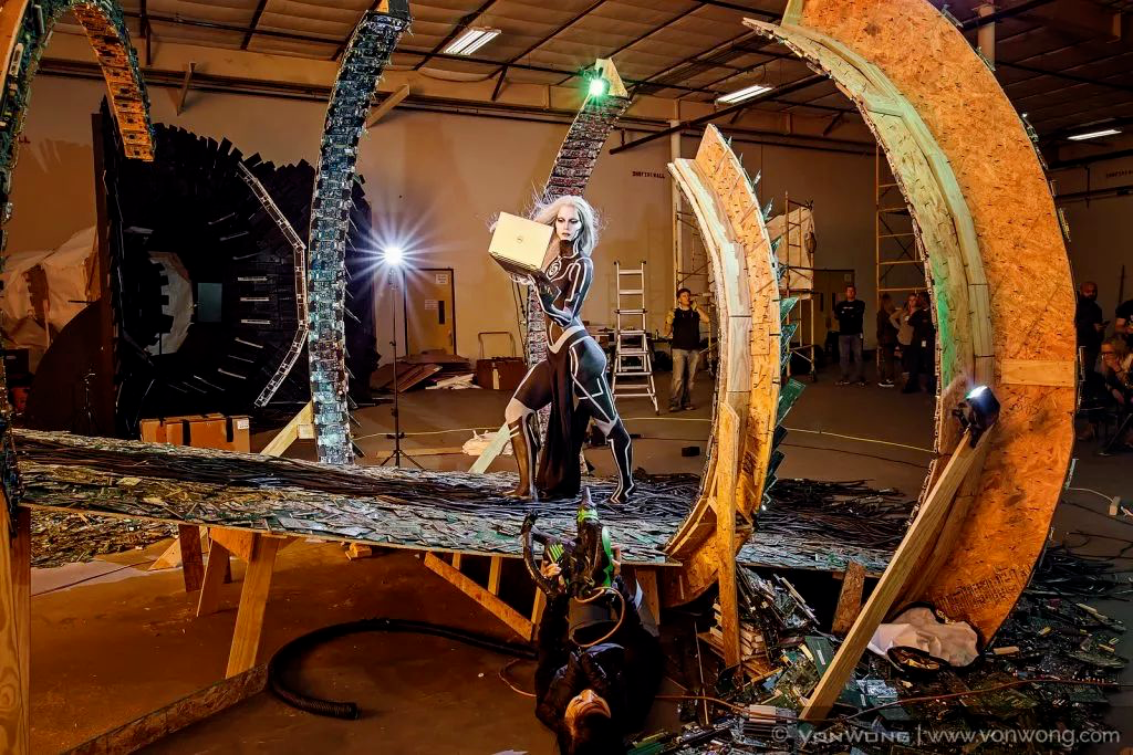 Benjamin Von Wong 将这些废旧电子设备重新分类,再经过切割、拼接、涂漆等工艺改造,达到最终的艺术效果。