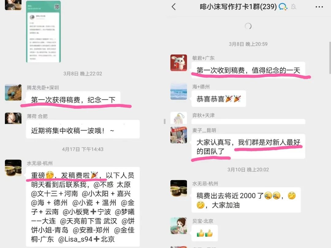 这周也才又发了一波稿费。两期写作打卡,我们光稿费就发了4000块了。